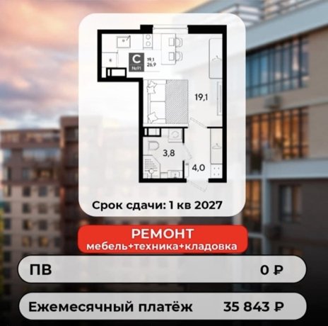 Варианты с первоначальным взносом 0 рублей, готовым ремонтом и низким платежом